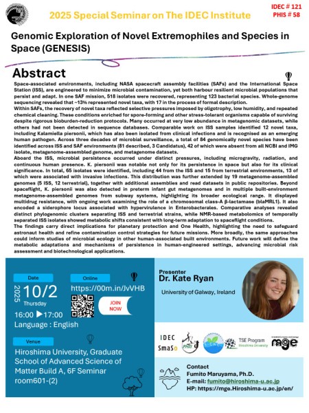 2025/10/2: Genomic Exploration of Novel Extremophiles and Species in Space (GENESIS)